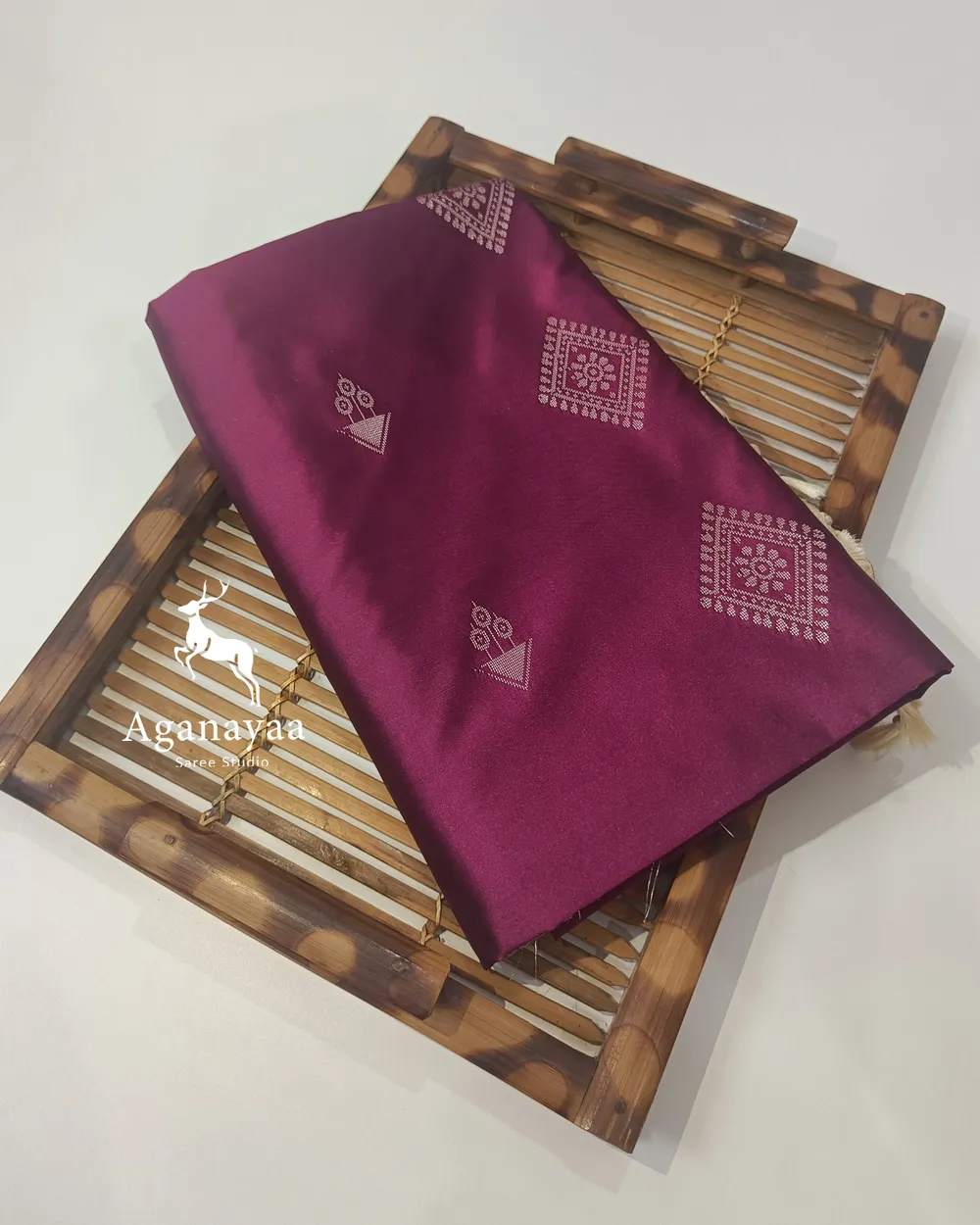 Artisanal folk vegan silk saree in Vadamalli has enchanting border in the floral pattern adorned with delicately rendered blooms.