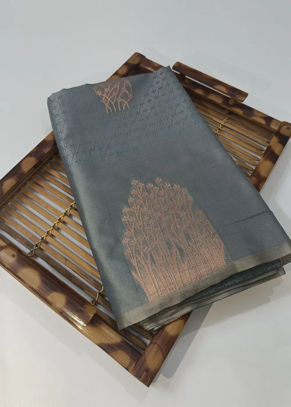 Embrace The Simplicity Of Our Borderless Grey Soft Silk Saree