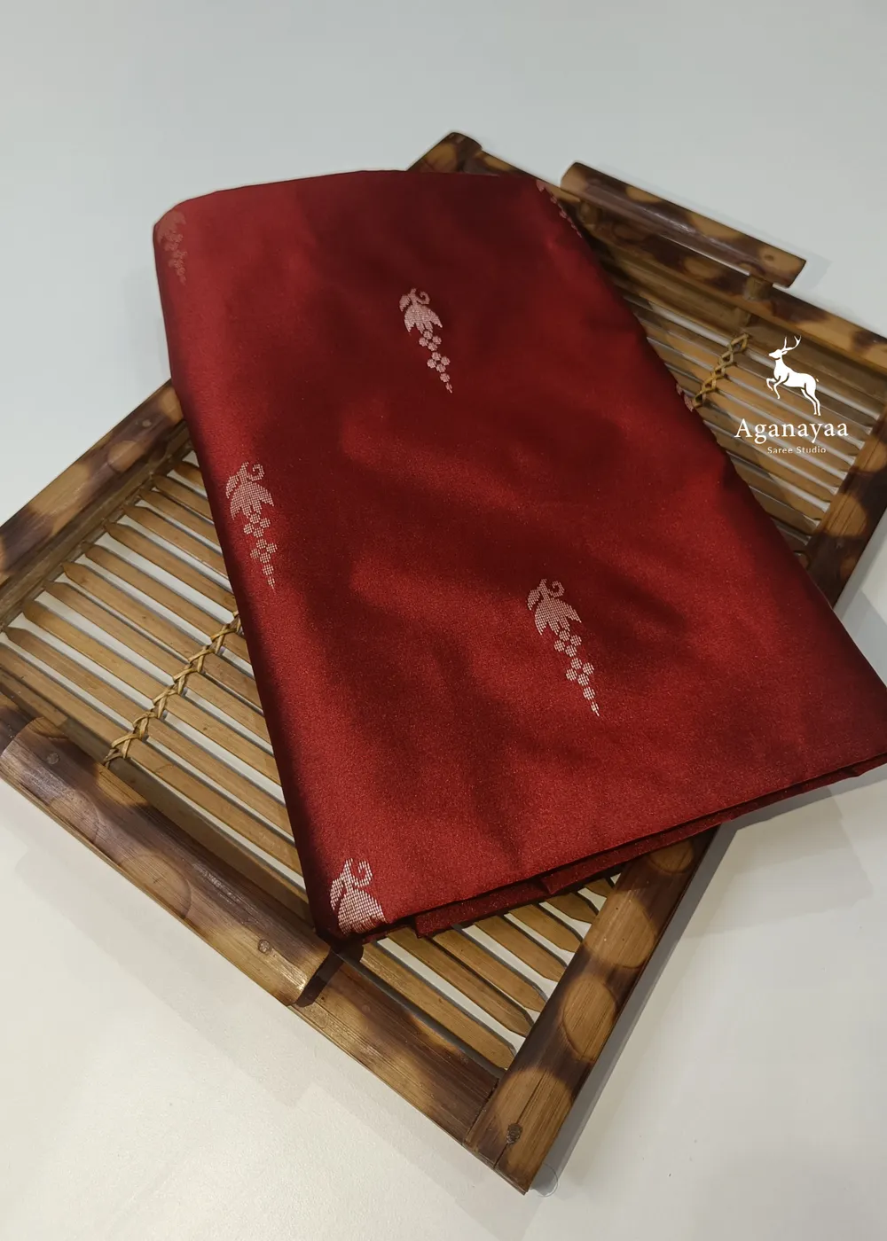 This exquisite Brick Red vegan silk features delicate buttas with unique check type border, which truly makes authentic.