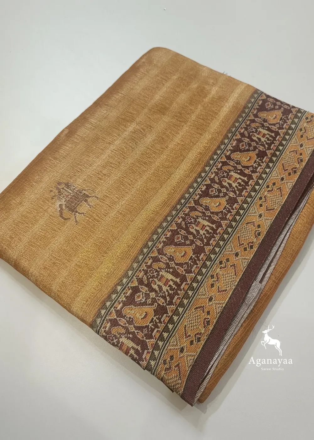 Mustard orange semi tussar saree with grand pallu in meenakari weaving