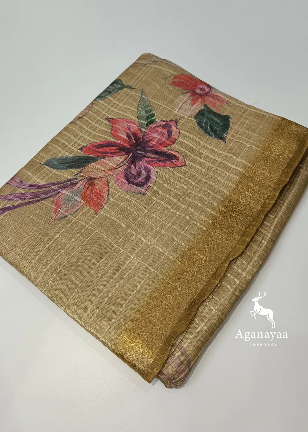 Experience our mustard yellow soft texture semi tussar saree enhanced by a rich tiny zari border and has elegant blouse.