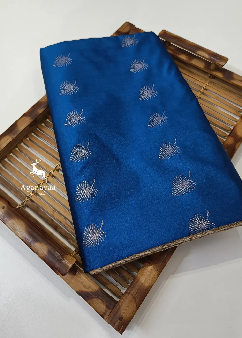 Our Royal Blue Vegan Silk With the unique Sparkling Motif which has Grand Rettapet Border