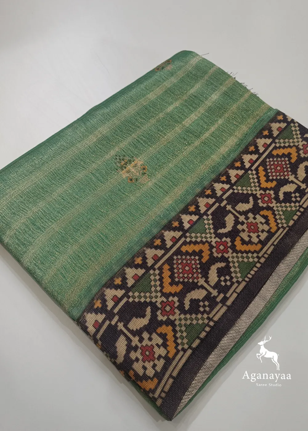 Teal green semi tussar saree with grand pallu in meenakari weaving
